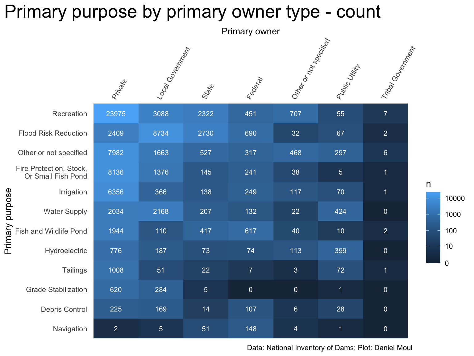 Figure 6.8: Primary purpose by primary owner type - count