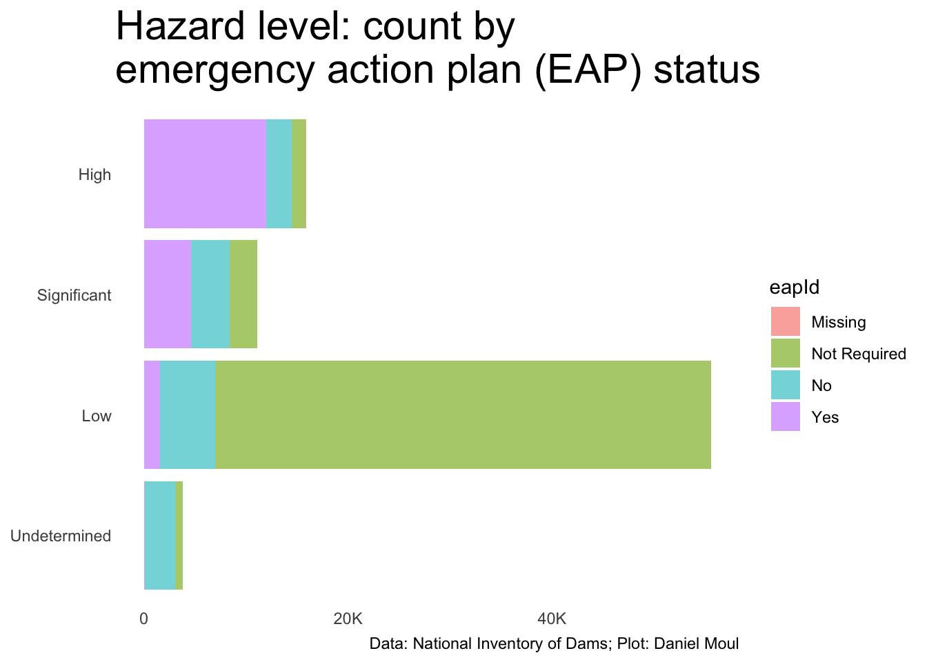 Emergency Action Plan (EAP Prepared) Indicating whether this dam has an Emergency Action Plan (EAP) developed by the dam owner. An EAP is defined as a plan of action to be taken to reduce the potential for property damage and loss of life in an area affected by a dam failure or large flood.